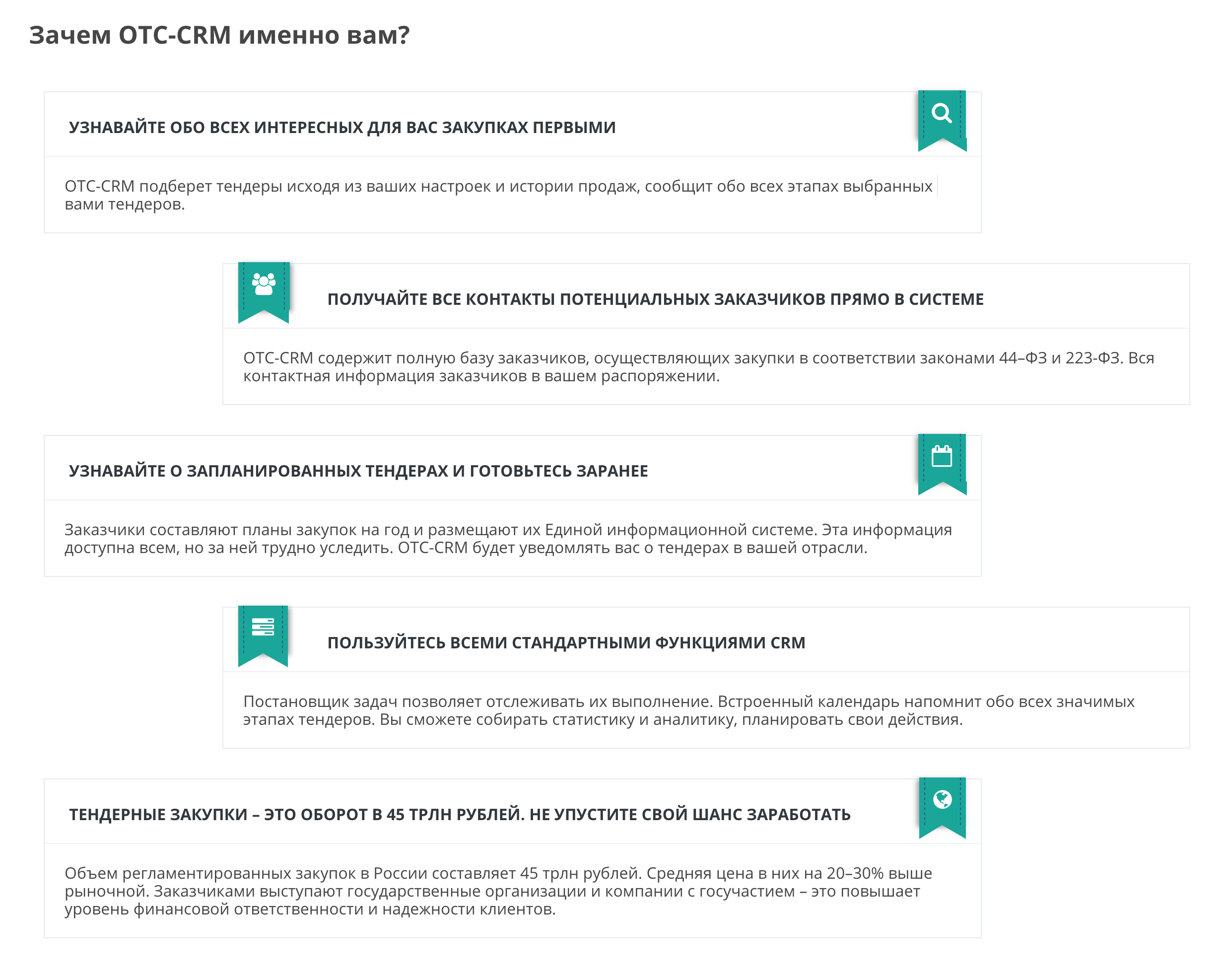 В определённый момент, компания стала перед вопросом эффективности организации закупок тендеров. Выбрали ОТС-CRM, так как она отвечает всем требованиям.