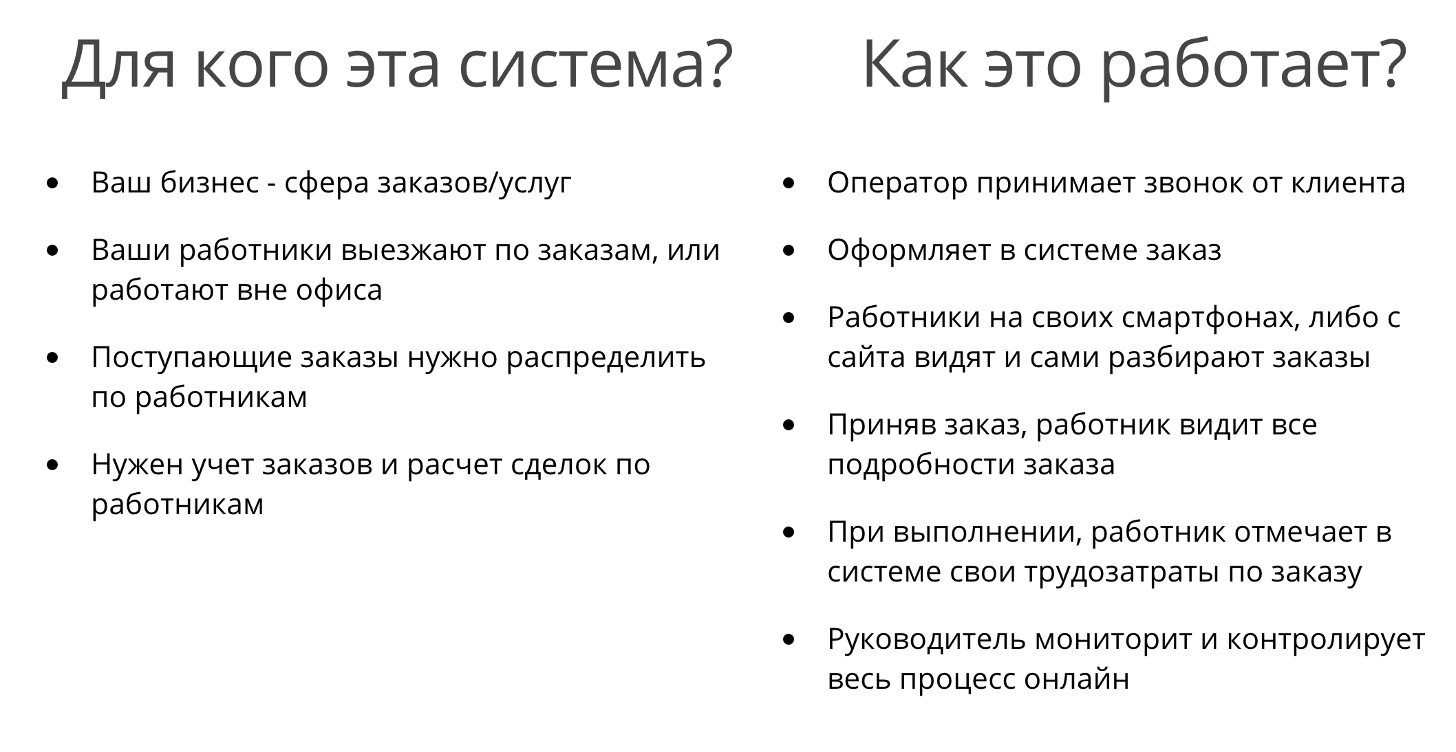 - Сотрудники напрямую со смартфонов или сайта самостоятельно берут заказы;
