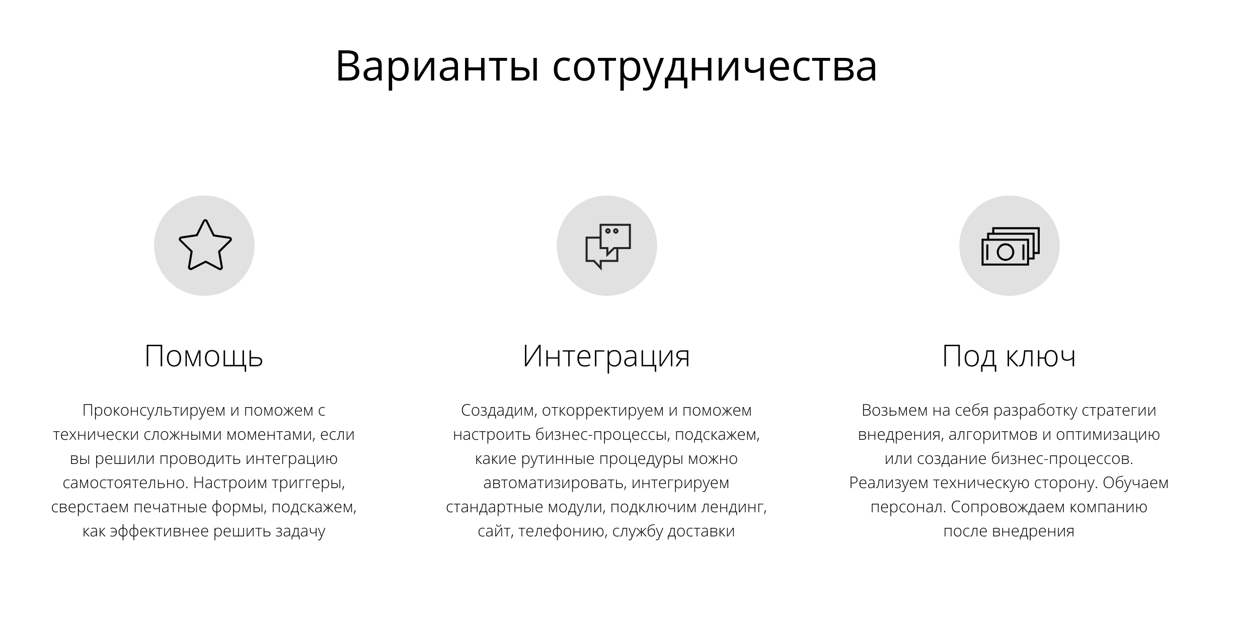 Мы можем внедрить RetailCRM "под ключ" или помочь с внедрением отдельных модулей